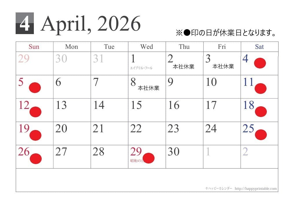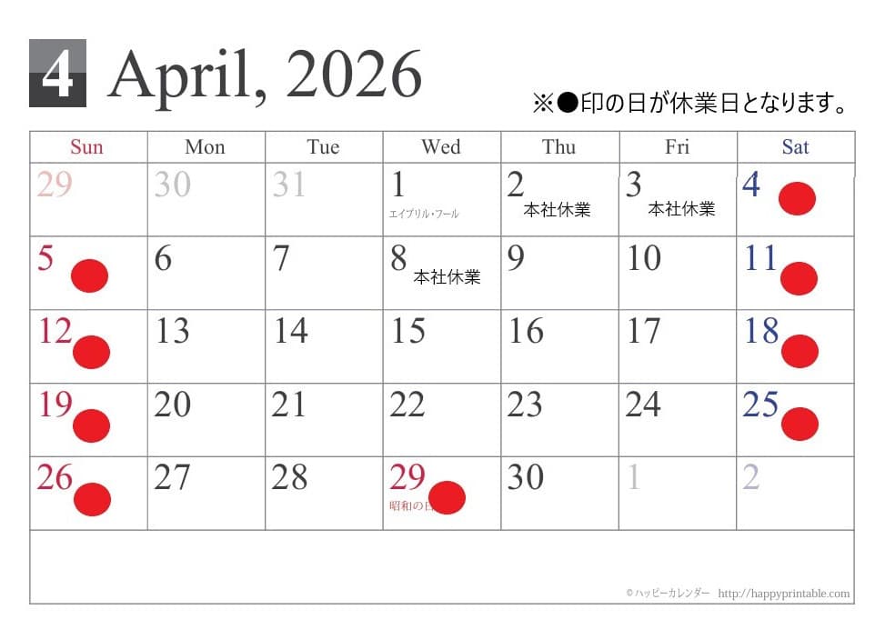 4月休業日を更新しました。